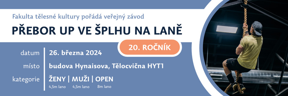 Katedra sportu Fakulty tělesné kultury Univerzity Palackého v Olomouci pořádá již 20. ročník veřejného závodu ve šplhu na laně. Vítěz v každé kategorii získává titul Přeborník UP pro rok 2024 a obdrží medaili a diplom. Závodníci na 2. a 3. místě obdrží medaili a diplom.